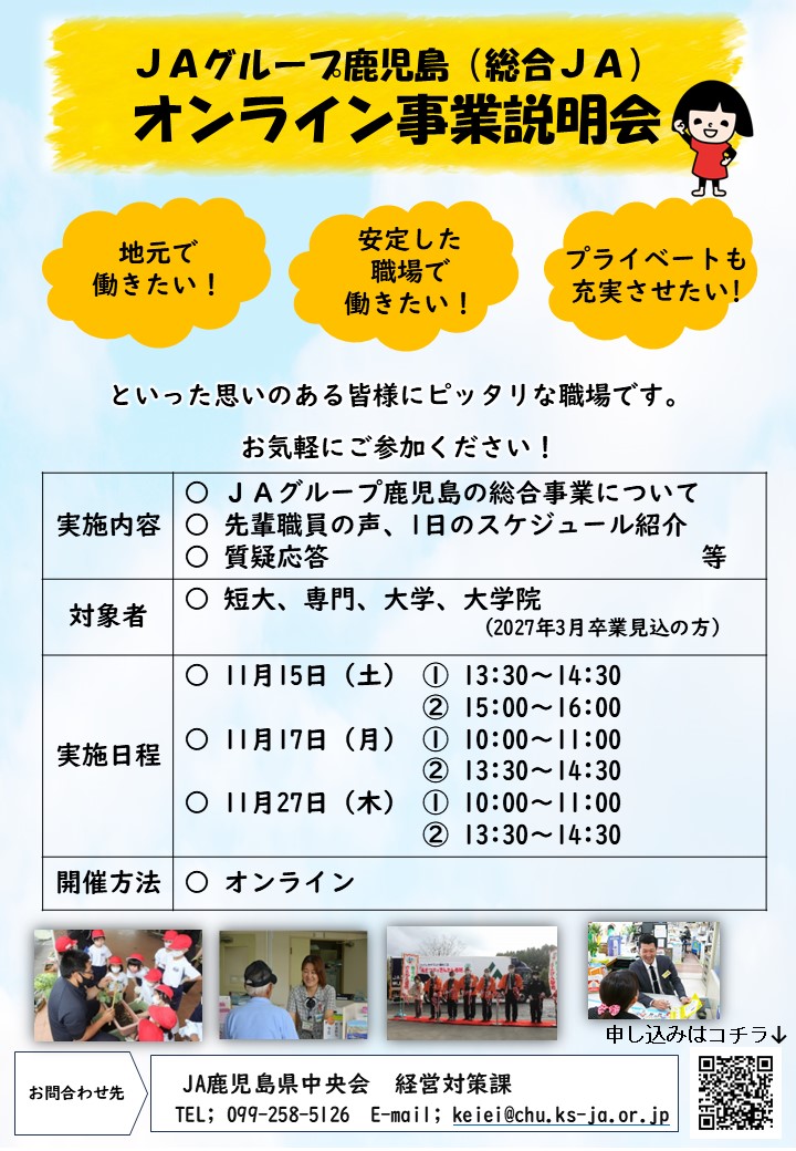 (令和9年4月採用)JAグループ鹿児島(総合JA)オンライン事業説明会の開催について